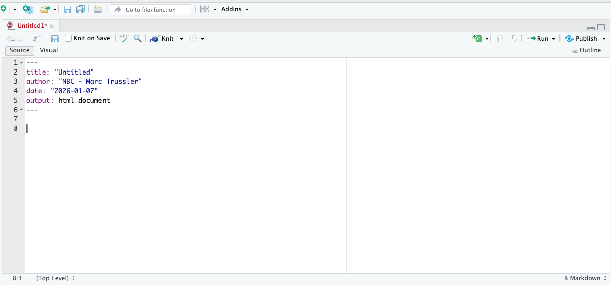 The information we included in the previous dialog box is included at the top of our file, which is called the preamble. This preamble is in YAML code, and is best left alone! The spacing and indentation in this section matters a great deal and you can break it.
