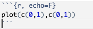 The inverse of this is a code chunk that displays the code but does not evaluate the code. For that we can use eval=F