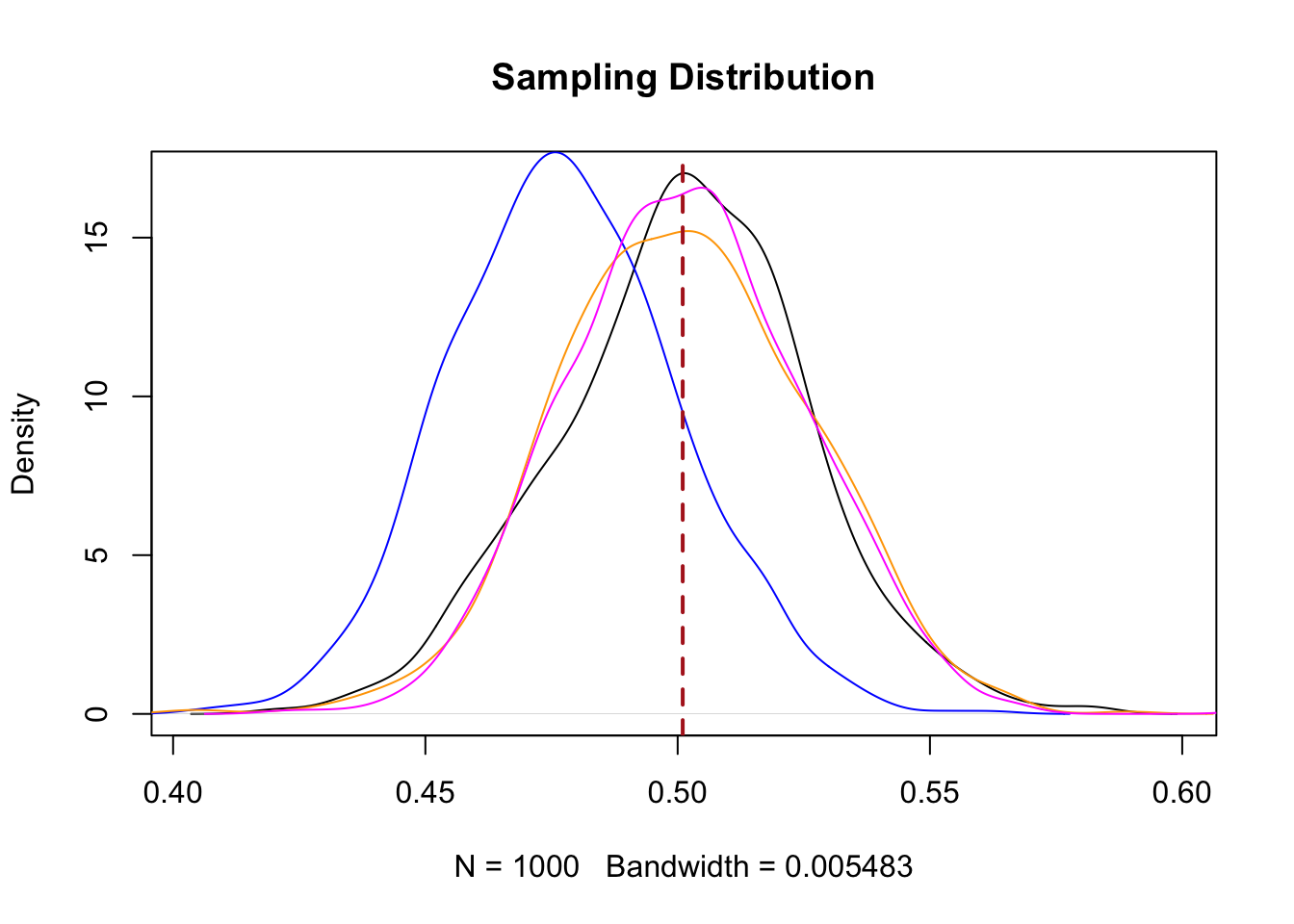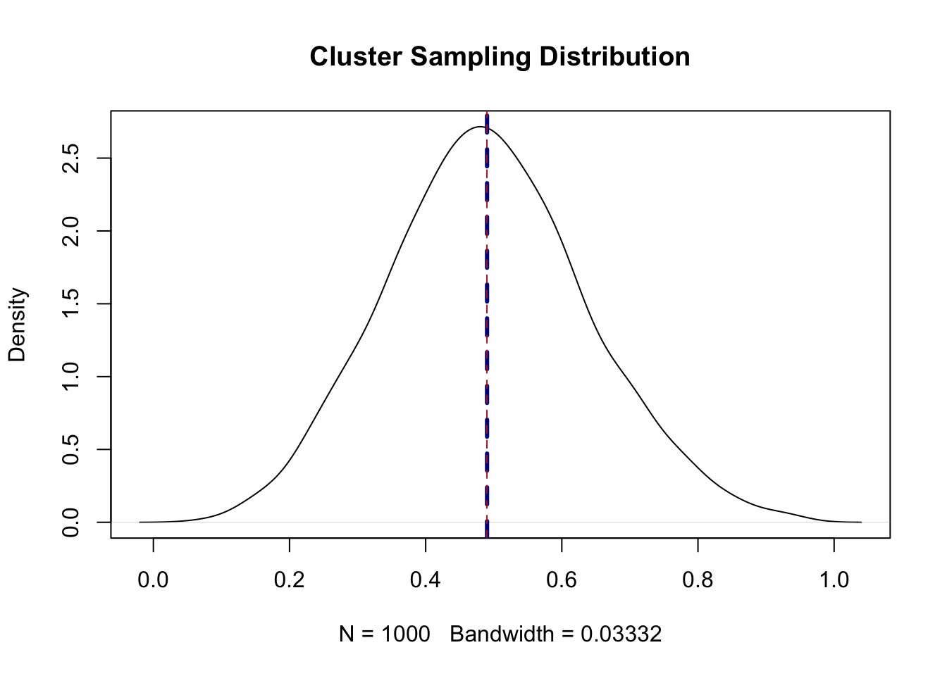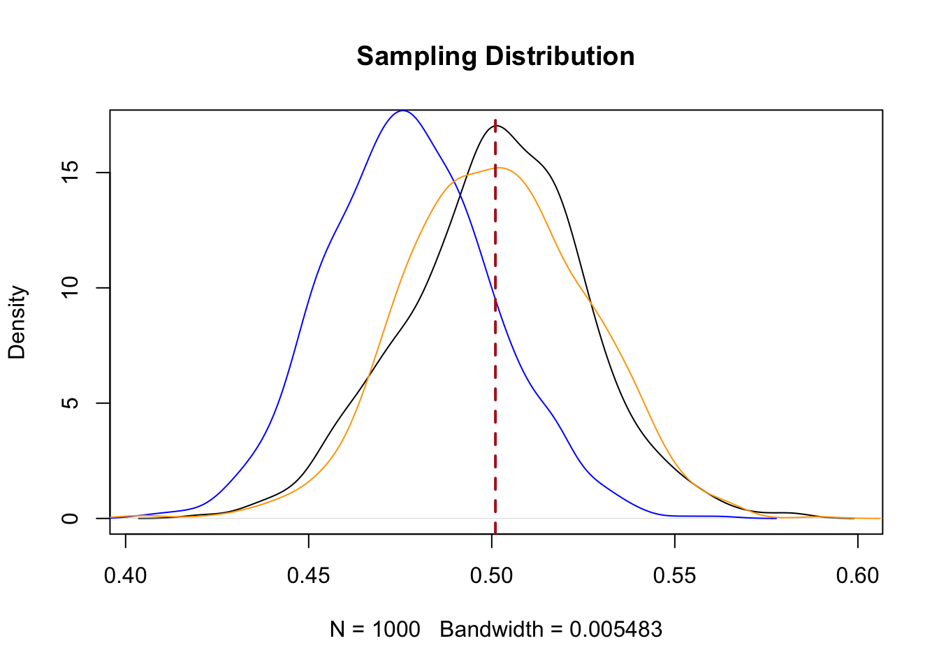 But if we do that the sampling principles will apply from above. The sample mean will be unbiased, and the standard error will be \(\sqrt{\frac{.25}{100}}\).