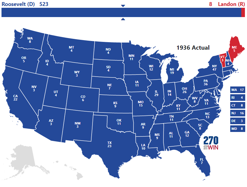 So using error on the margin, the real result was FDR +24 and the poll had FDR -14, for a polling error of 38 points!
